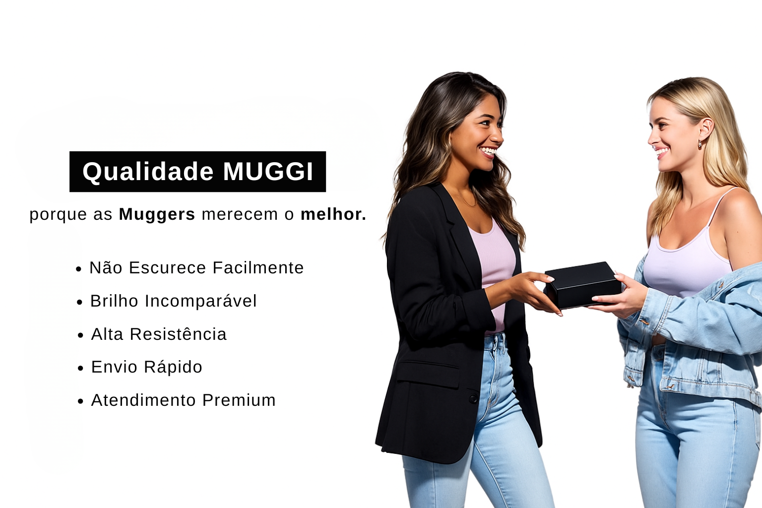 Todas as semijoias da MUGGI Acessórios passam por um rigoroso processo de controle de qualidade, garantindo peças sofisticadas, duráveis e seguras para uso diário.